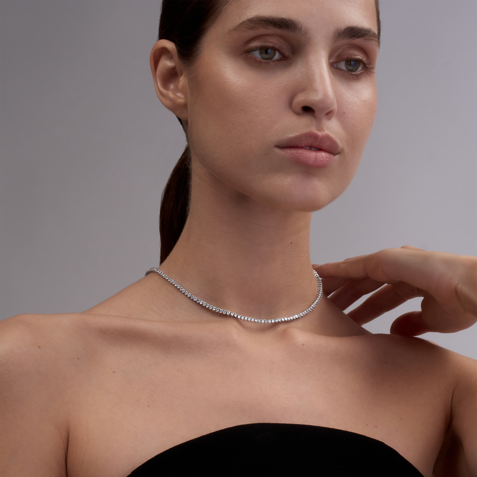 - TENNIS NECKLACE: A lab-grown diamond tennis necklace with a line of perfectly matched stones creates a ribbon of sparkle around your neckline. It's red carpet ready when paired with a gown and looks razor sharp with a white shirt and blazer.